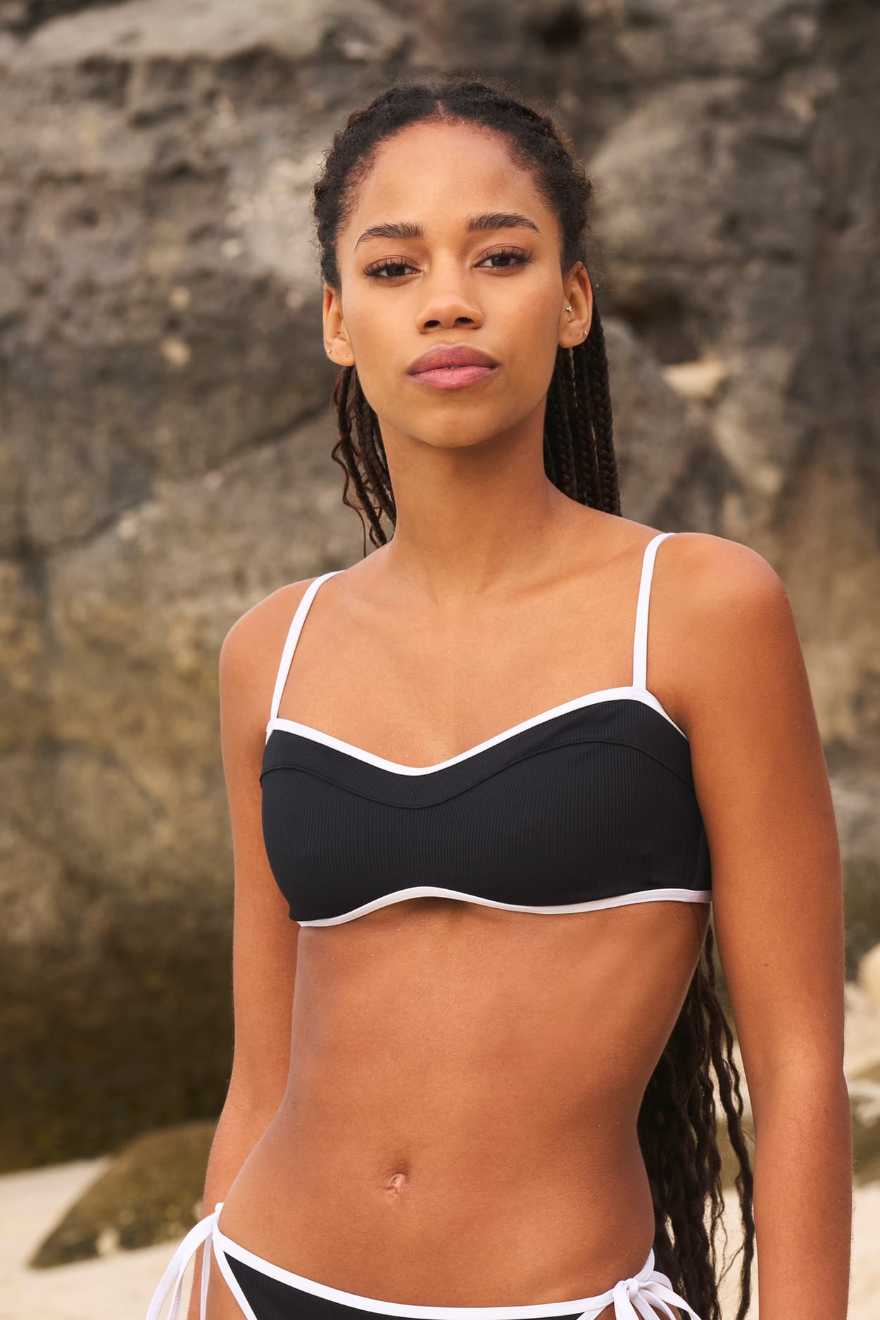 Jeu de contraste et coupe incontournable : découvrez la brassière coup de cœur de la saison. Finement côtelée et munie d...