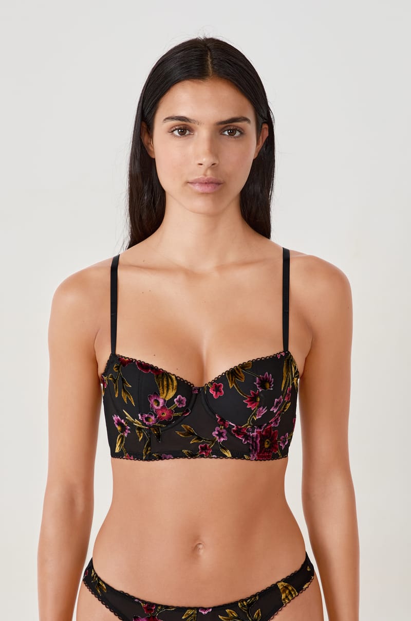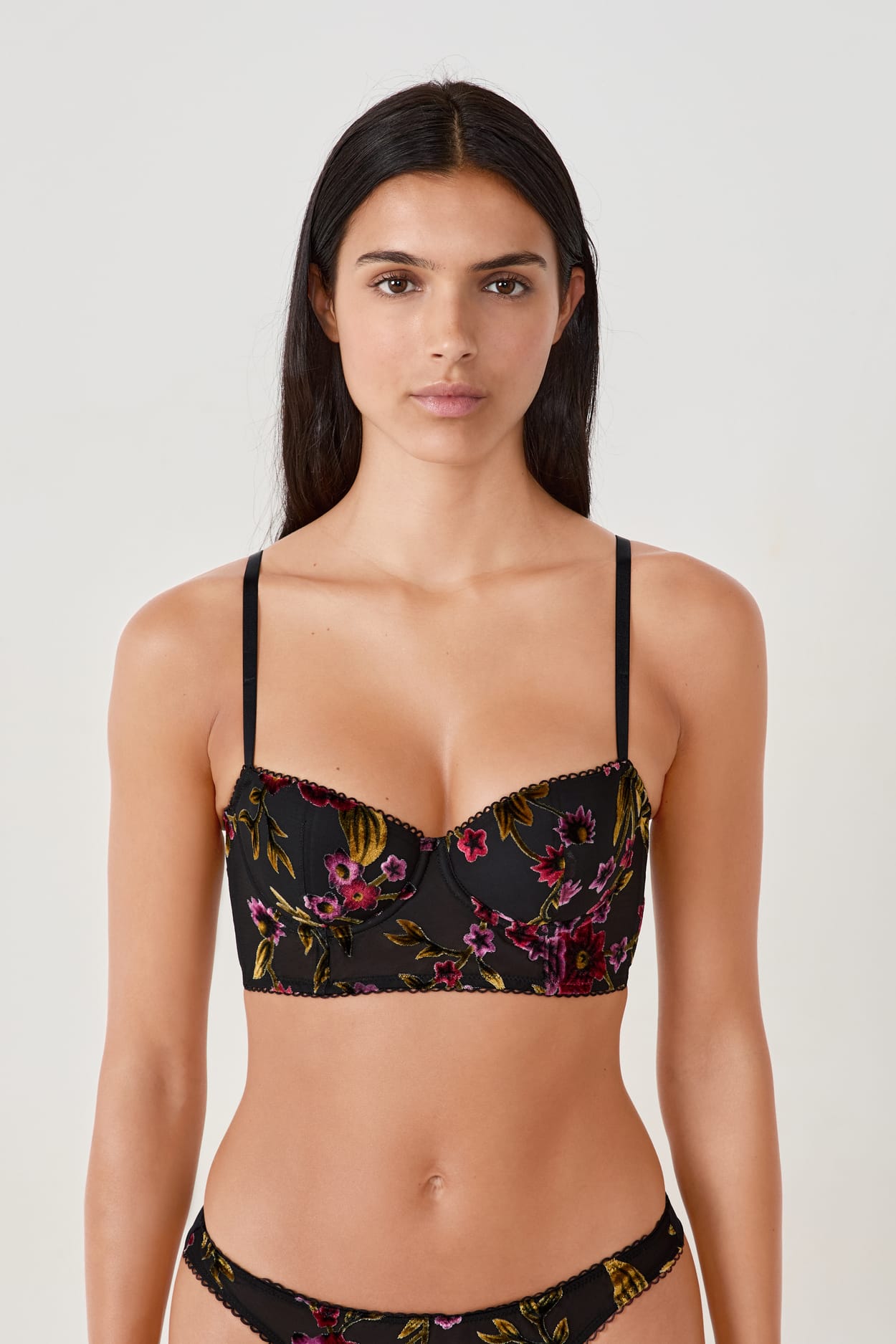 Idéal pour un look sobre et élégant, ce soutien-gorge opte pour une forme bustier. Muni d'un imprimé fleuri en velo...