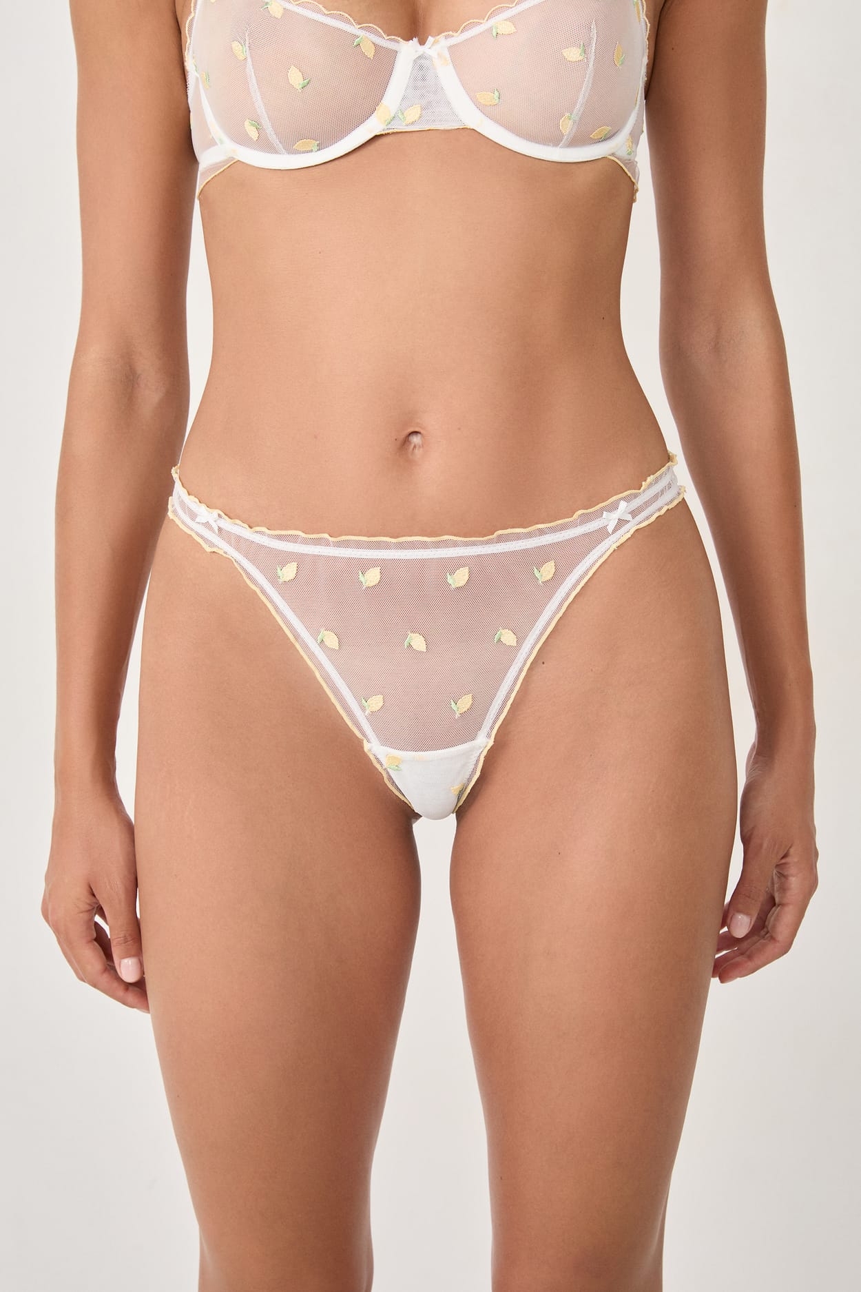 Cette saison, le tutti frutti est à l’honneur. Ce string se pare de broderies citron en all over et d’un délicat nœud, p...