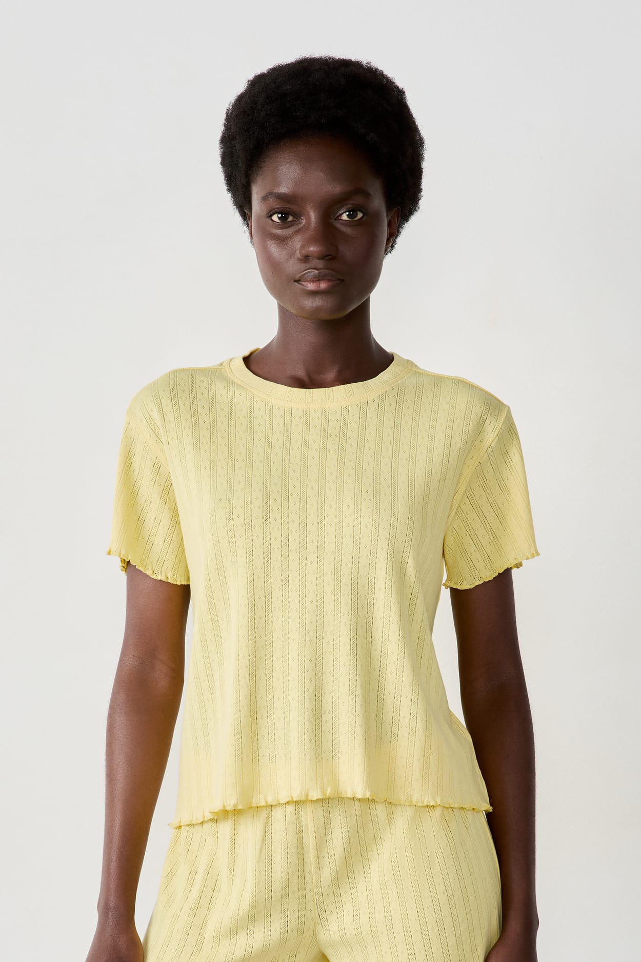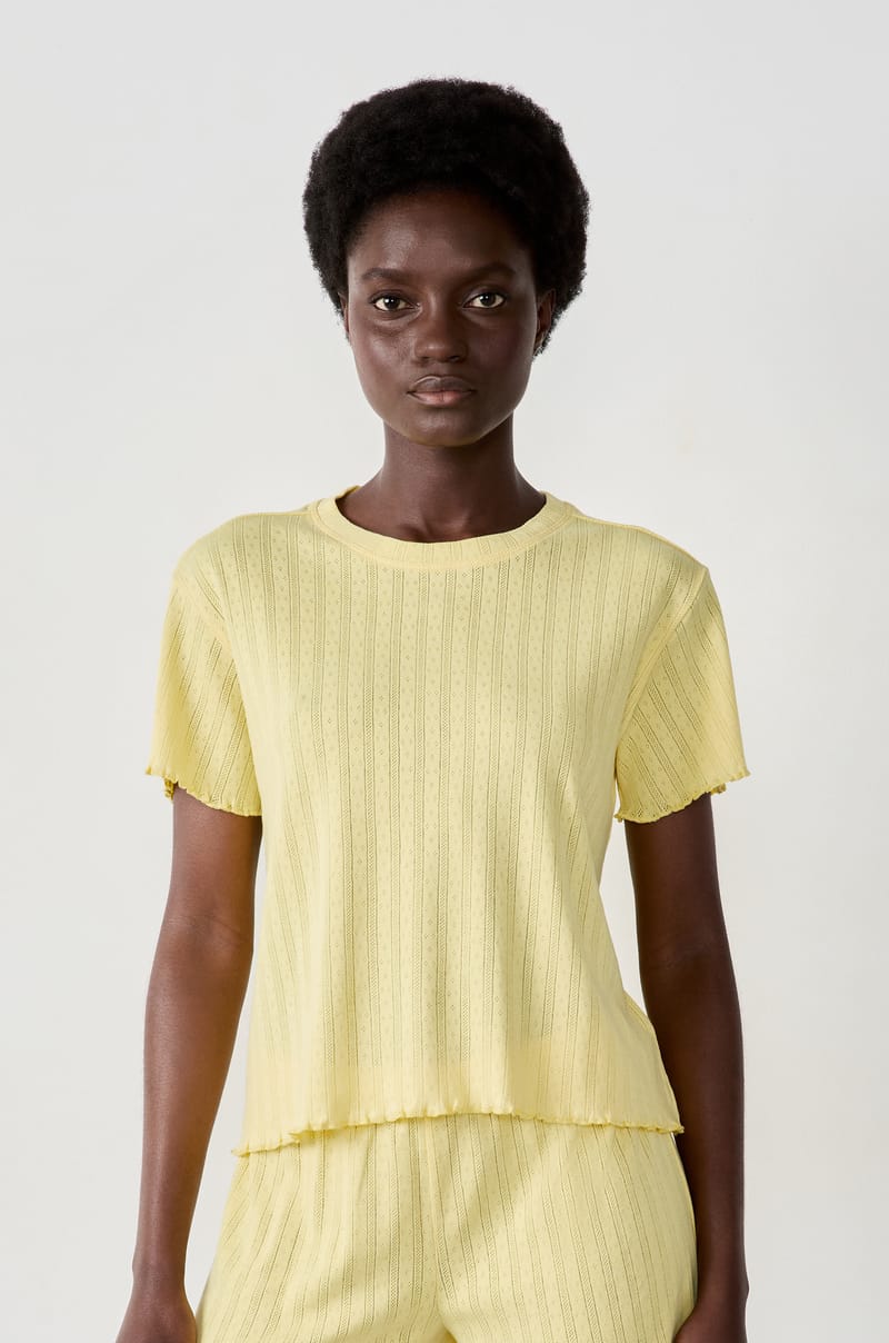 Le confort est repensé à travers ce t-shirt en pointelle, à manches courtes et col rond. Que ce soit avec son bas assort...