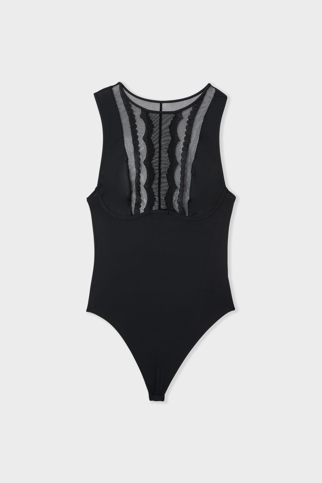 Confectionné en microfibre, ce body effet seconde peau s'habille d'une dentelle graphique. Il est muni d'...