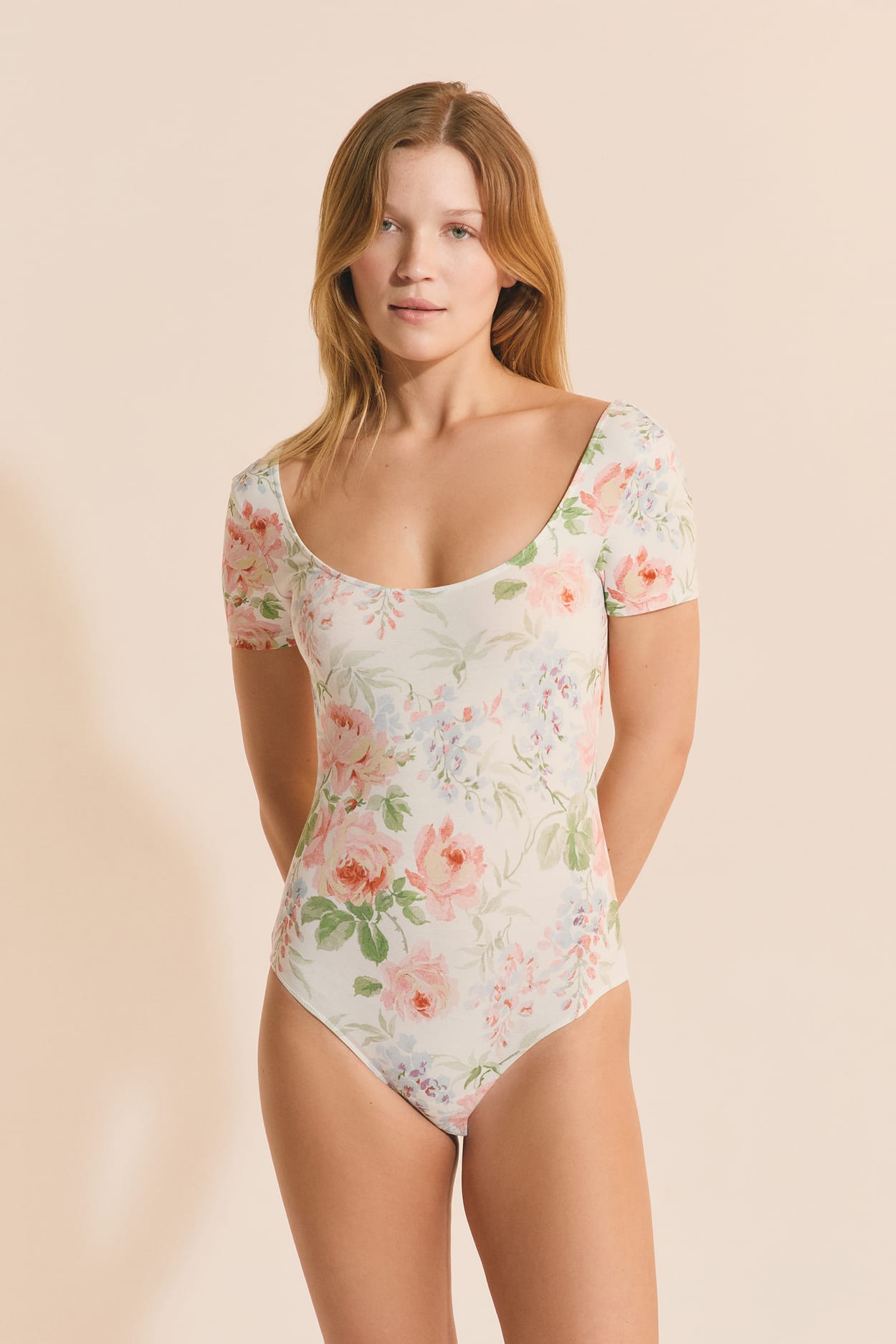 Body de pyjama à manches courtes à motif fleuri;${refinementColor}