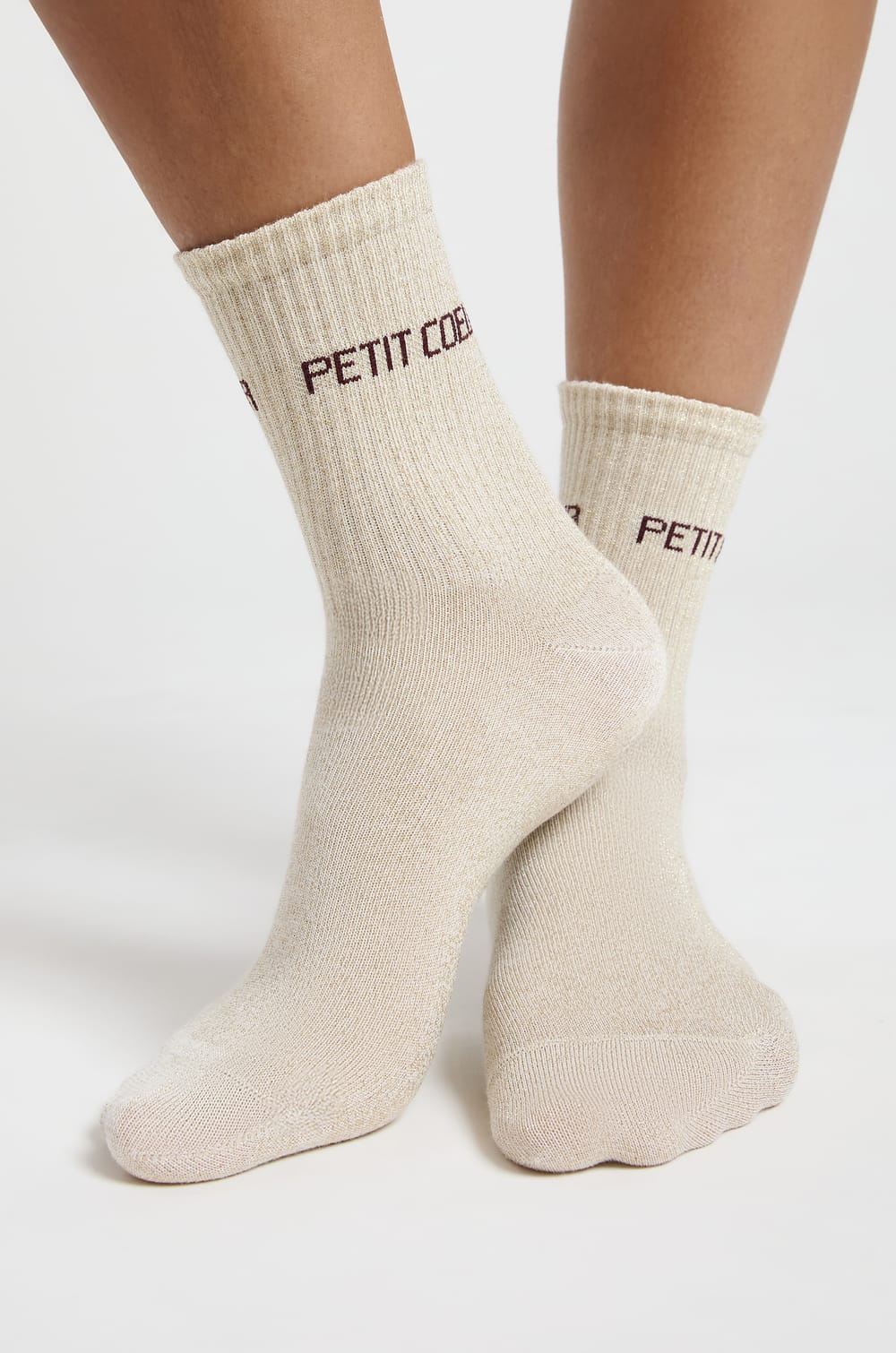 Idéales pour réhausser un look, ces chaussettes optent pour une finition irisée et une petite inscription....
