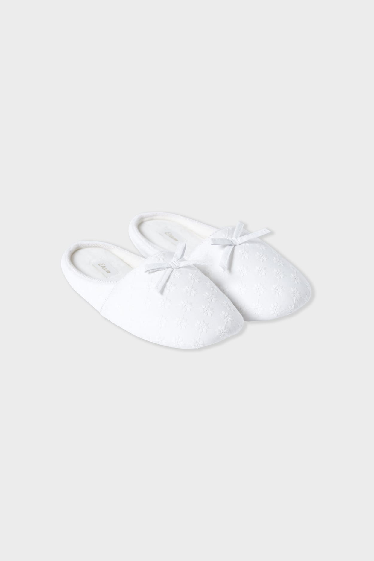 Ces chaussons mules se font délicats avec leurs nœuds et leurs motifs fleuris. Ils sont idéaux pour cocooner au chaud....