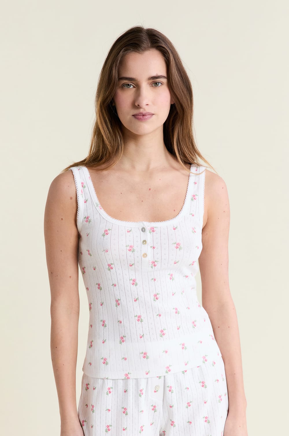 Confort et légèreté, ce débardeur en coton à motifs offre une douceur agréable et une sensation de bien-être pour des nu...