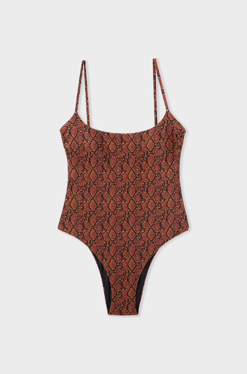 Maillot de bain 1 pièce à imprimé python et détail bijou