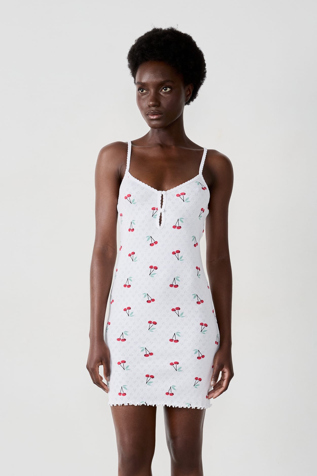 Nuisette courte à fines bretelles en pointelle motifs fleurs