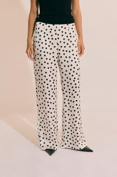 Pantalon droit satiné à pois;${refinementColor}