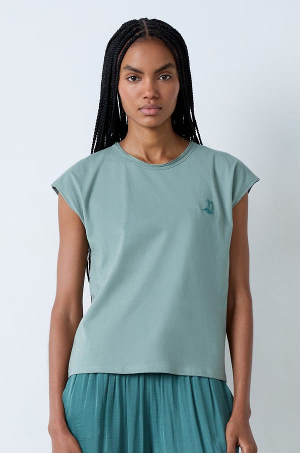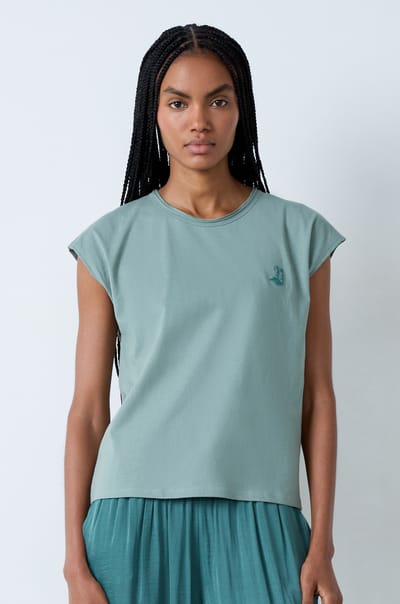T-shirt manches courtes en coton côtelé;${refinementColor}