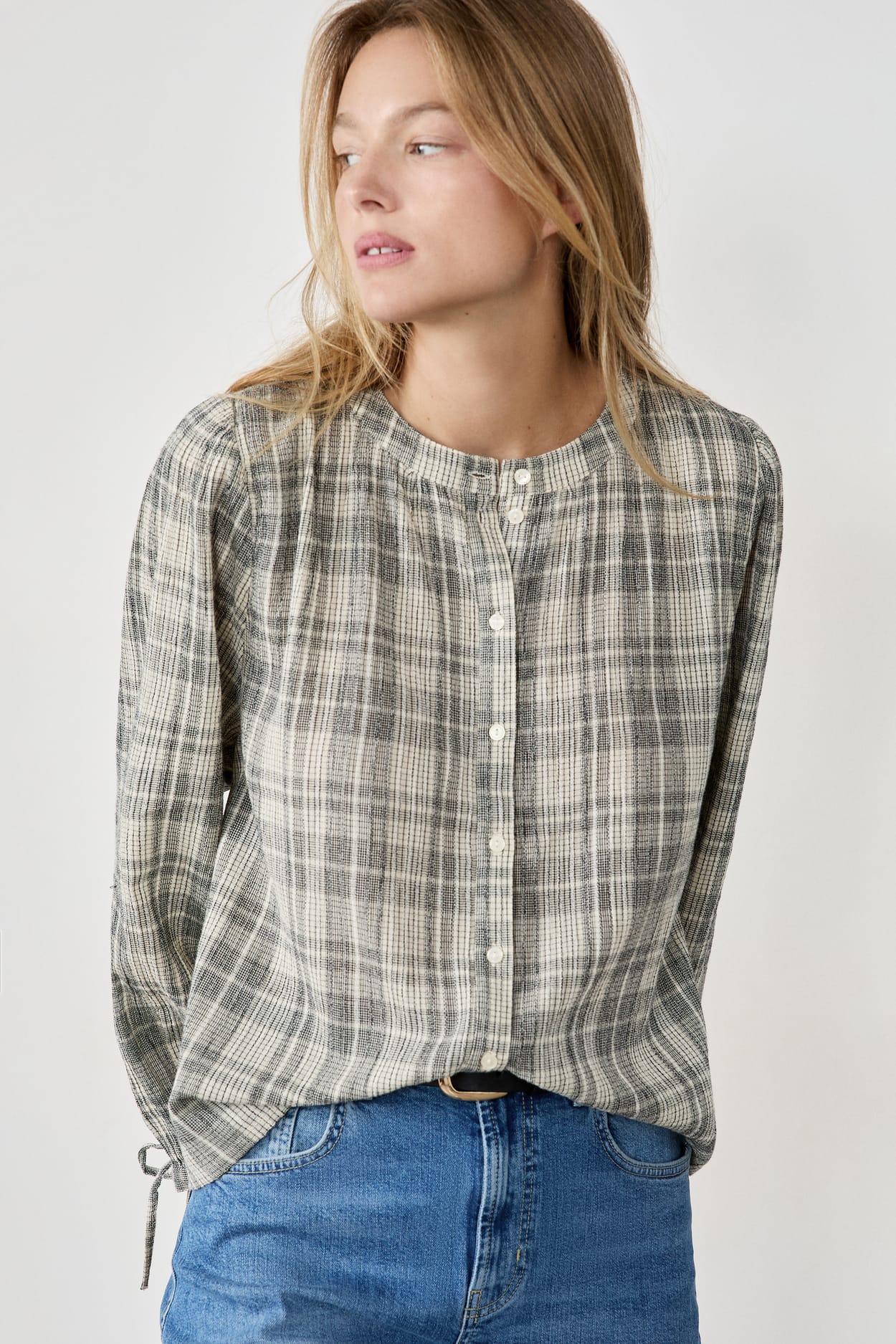 Cette chemise en coton s'habille de carreaux, imprimé phare de la saison. Elle est munie d'un col rond et petits nœuds à...
