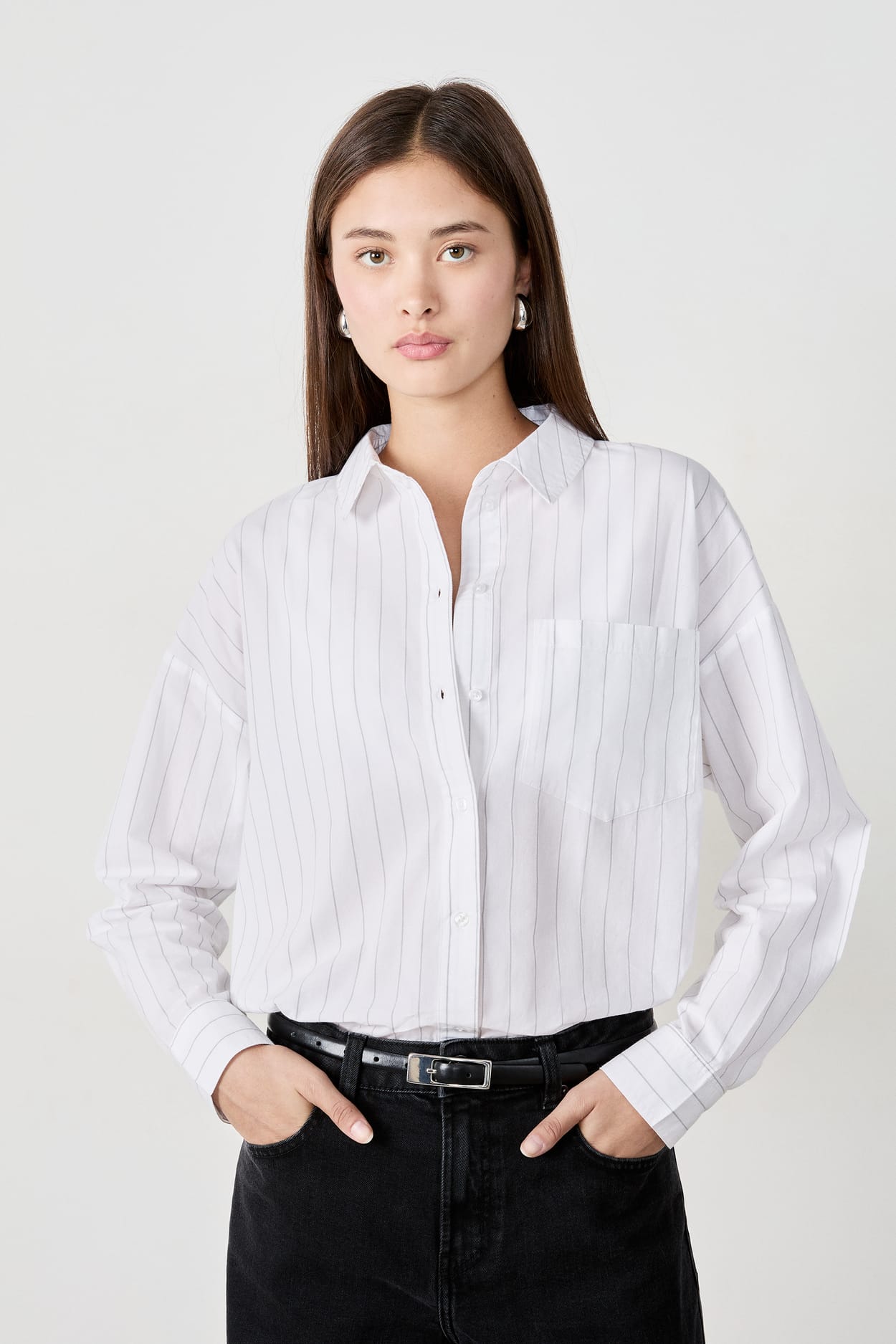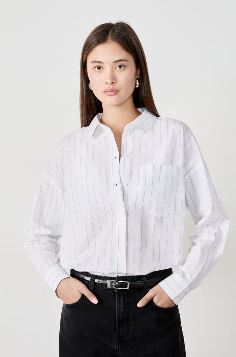Ornée d'un imprimé rayures, cette chemise à manches longues dévoile un col classique et une fermeture boutonnée....