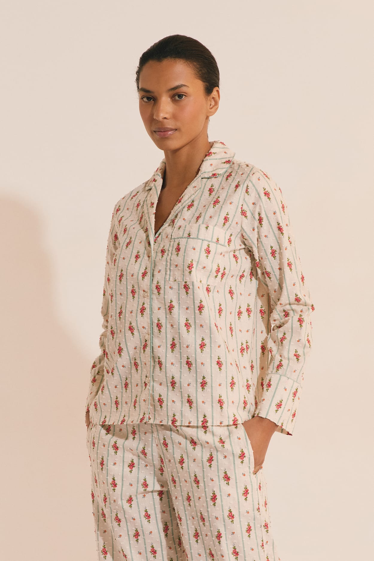 Chemise de pyjama à motifs fleuris en coton;${refinementColor}