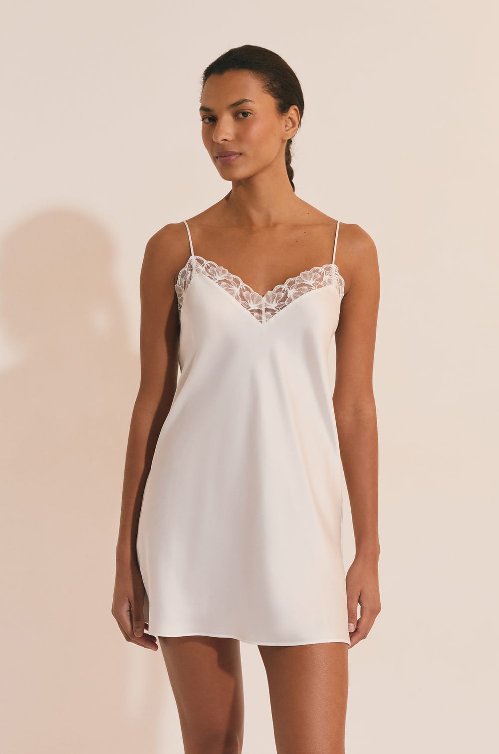 Nuisette de pyjama satinée avec détail en dentelle;${refinementColor}