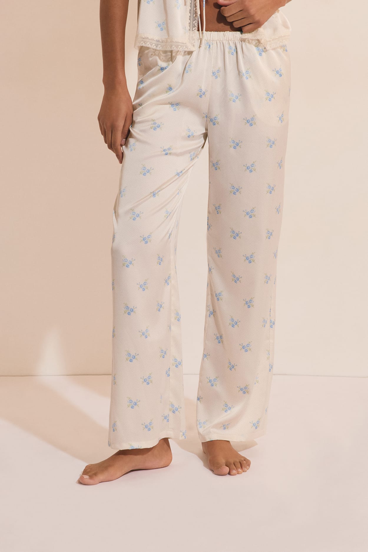 Pantalon de pyjama satiné à motifs fleuris;${refinementColor}