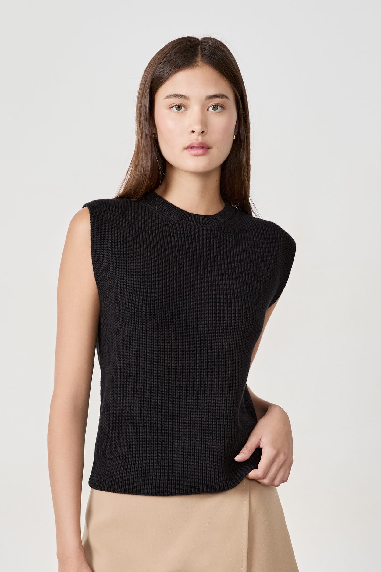 Essentiel du vestiaire, ce pull sans manches en maille avec une coupe épurée et un col rond est un basique à avoir toute...