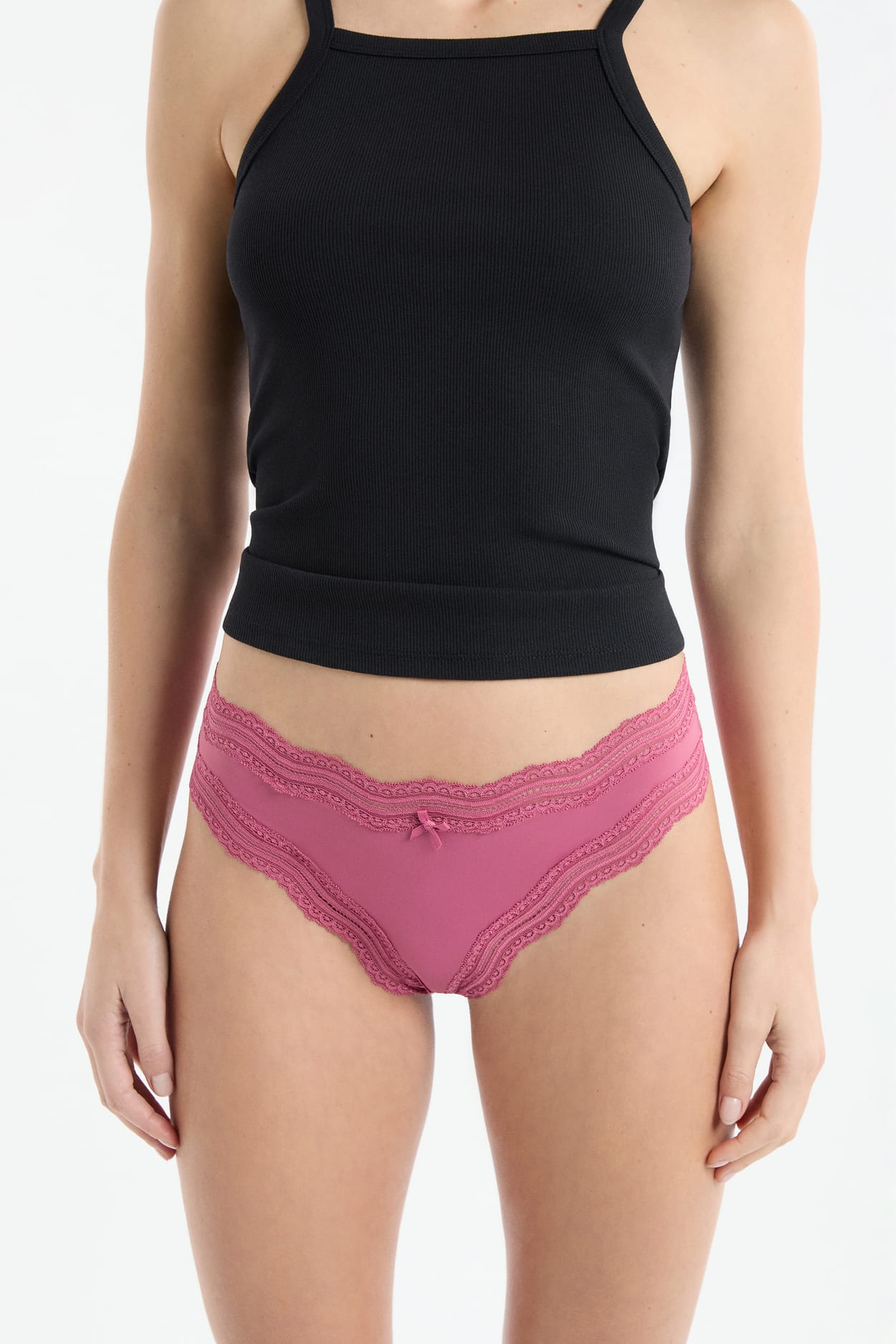 Tanga à bords dentelle en microfibre;${refinementColor}