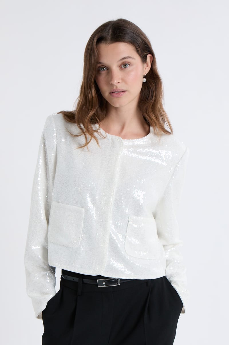 Idéale pour briller en soirée, cette veste à sequins opte pour une coupe droite. Elle est munie de manches longues et de...