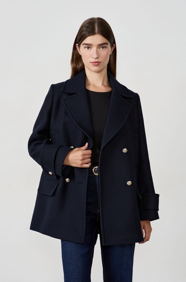 Manteau court coupe droite avec laine;${refinementColor}