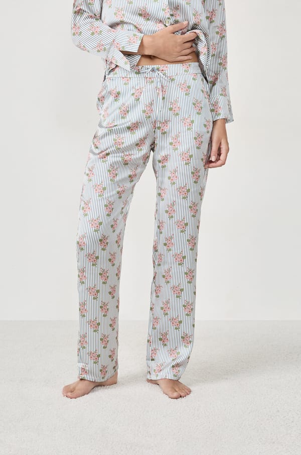 Satijnen pyjamabroek met bloemenpatroon;${refinementColor}