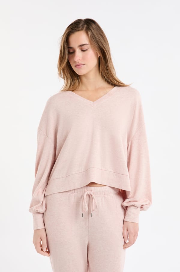 Pyjama sweatshirt met V-hals;${refinementColor}