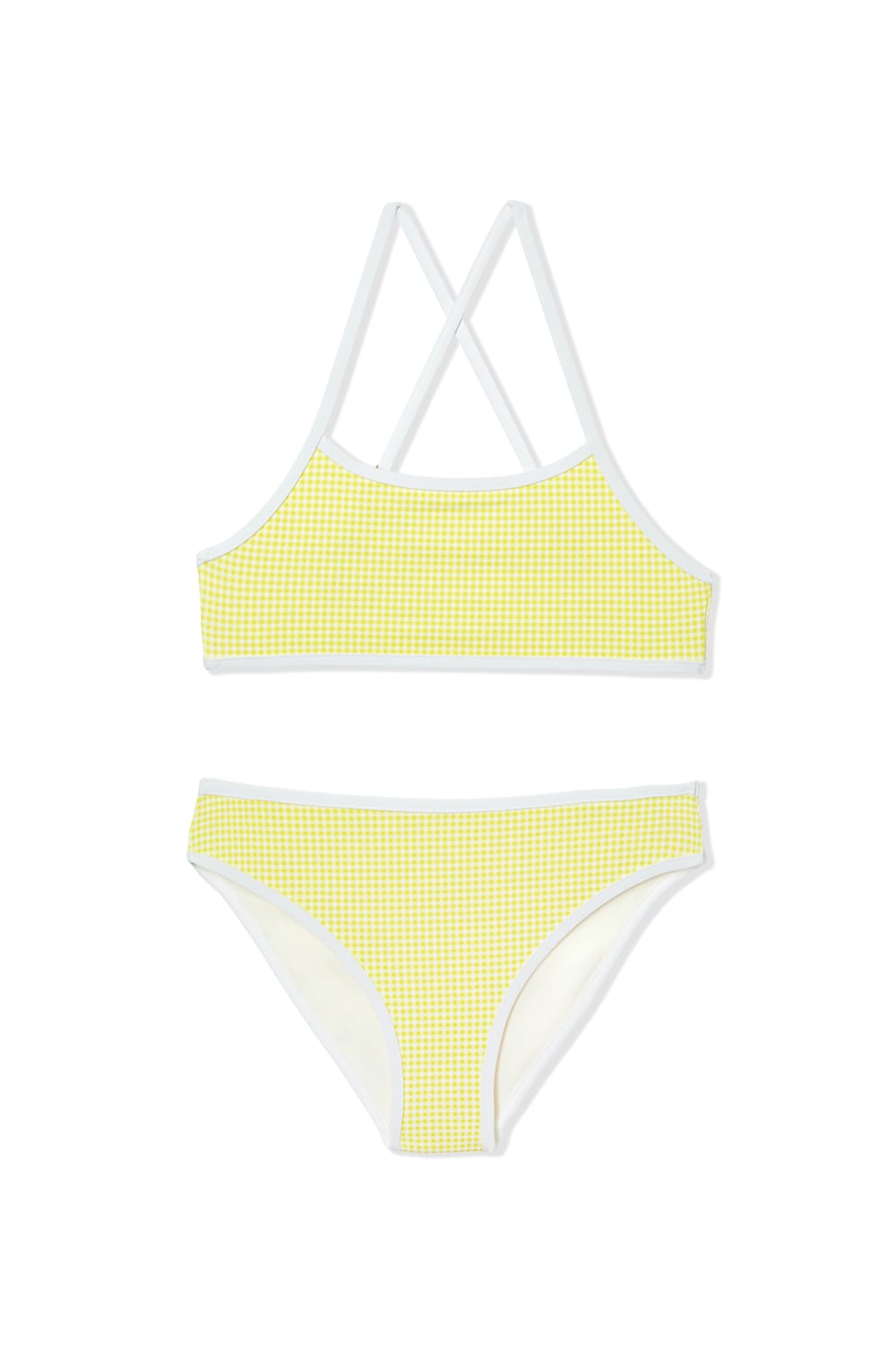 Craquez pour cet ensemble de bain enfant à l’imprimé vichy, composé d’un haut triangle et d’une culotte assortie. Une silhouette estivale facile à porter, à associer aux versions femme pour jouer le matchy-matchy.