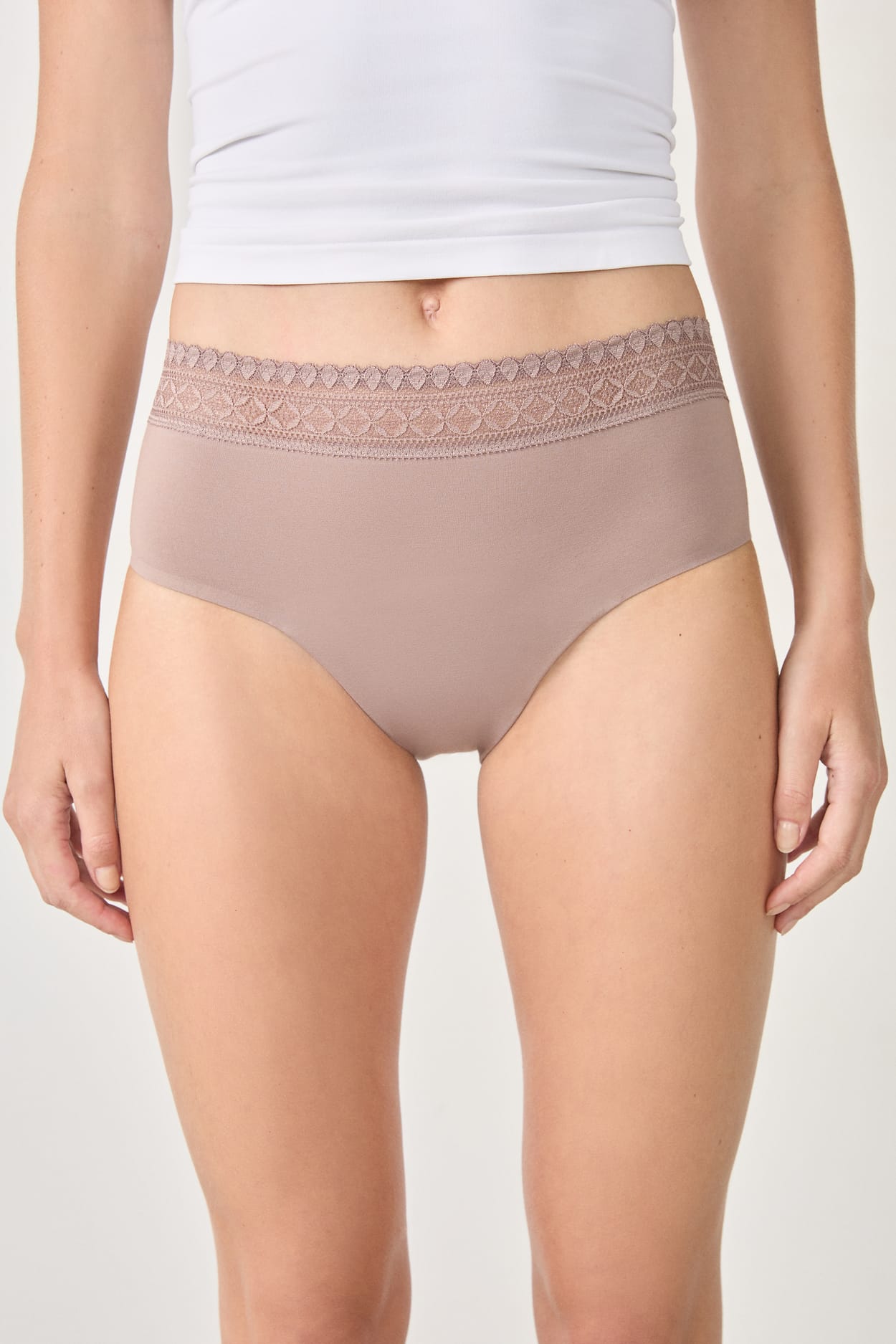 GUIDE D'ENTRETIEN : Rincez la culotte à l'eau froide, passez-la en machine à 30°C sans adoucissant, n'utilisez pas la fonction séchoir de votre machine et faites sécher la culotte à plat.