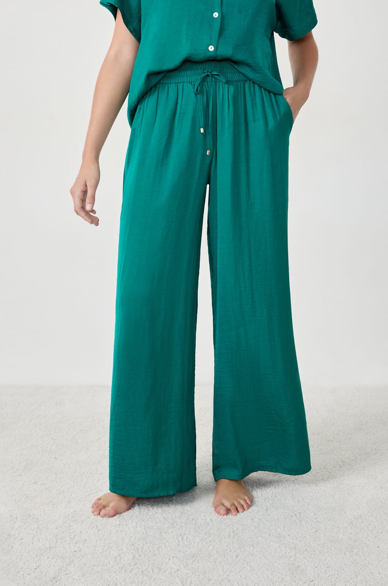 Large et délicatement satiné, ce pantalon à fronce offre un confort parfait et des nuits très douces. Ajoutez le caraco coordonné pour compléter le look.