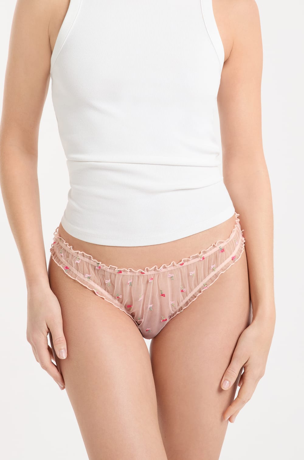 Légère et féminine, cette culotte en tulle transparente est ornée de délicates broderies....
